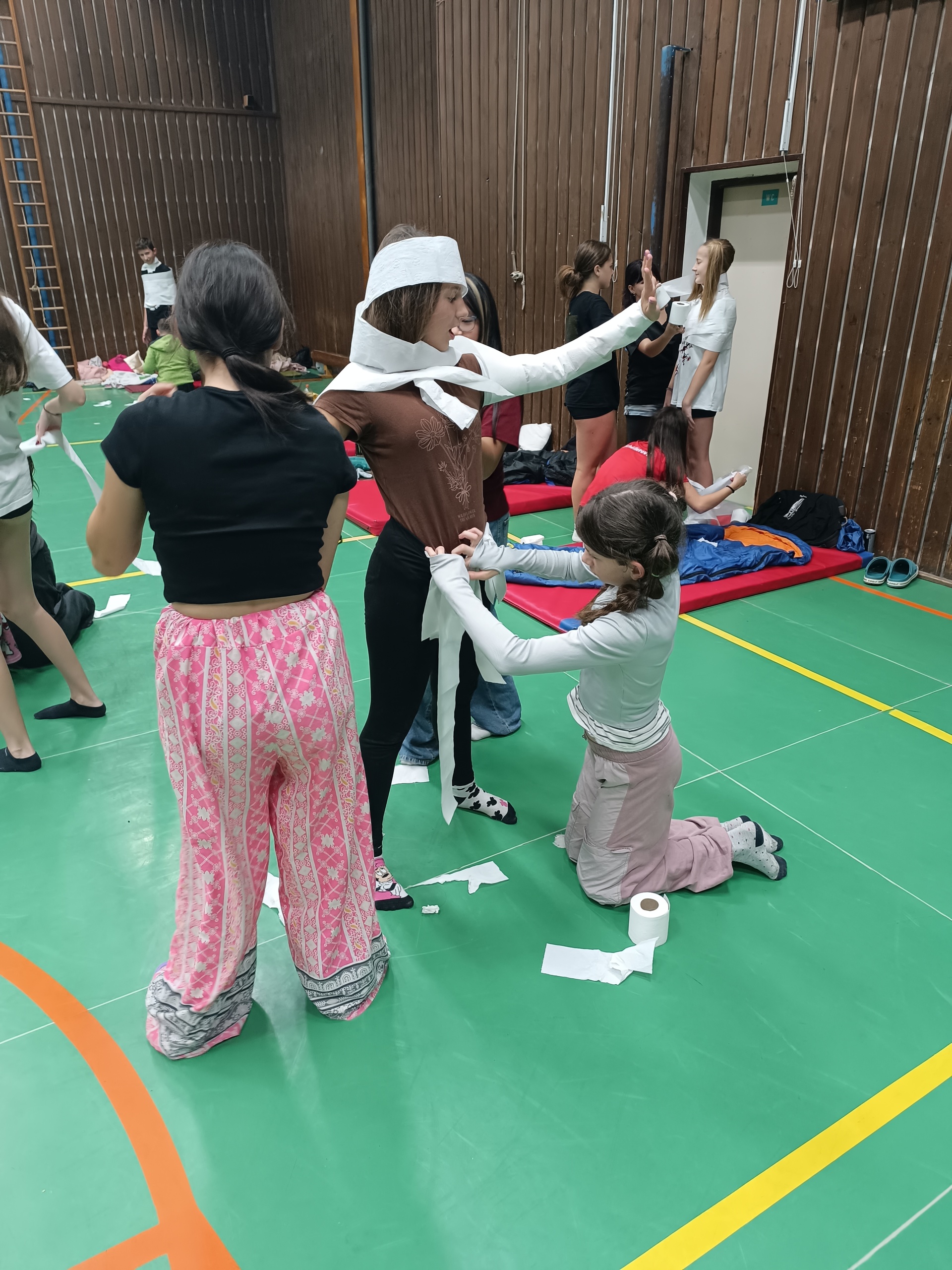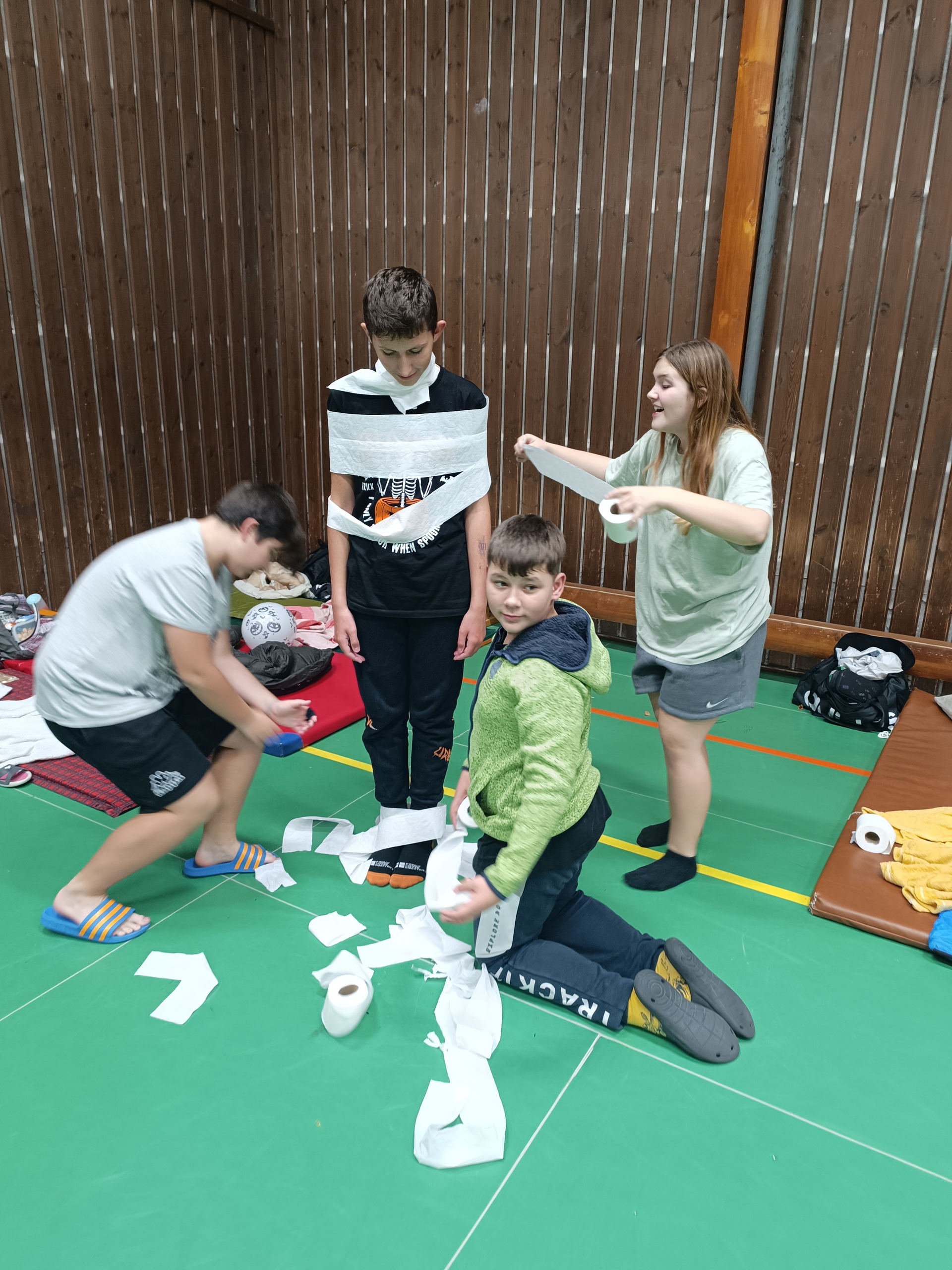 Program přespávačky byl bohatý a zábavný. Večer jsme zahájili objednávkou jídla – pizza a McDonald’s. Následoval halloweenský kvíz, taneční zábava s balónky, a kreativní soutěž ve vytváření mumie z toaletního papíru. Na závěr jsme si pustili film, který děti příjemně uklidnil před spaním. Celá akce proběhla v přátelské atmosféře a byla plná společných zážitků. Už teď se těšíme na další ročník!
