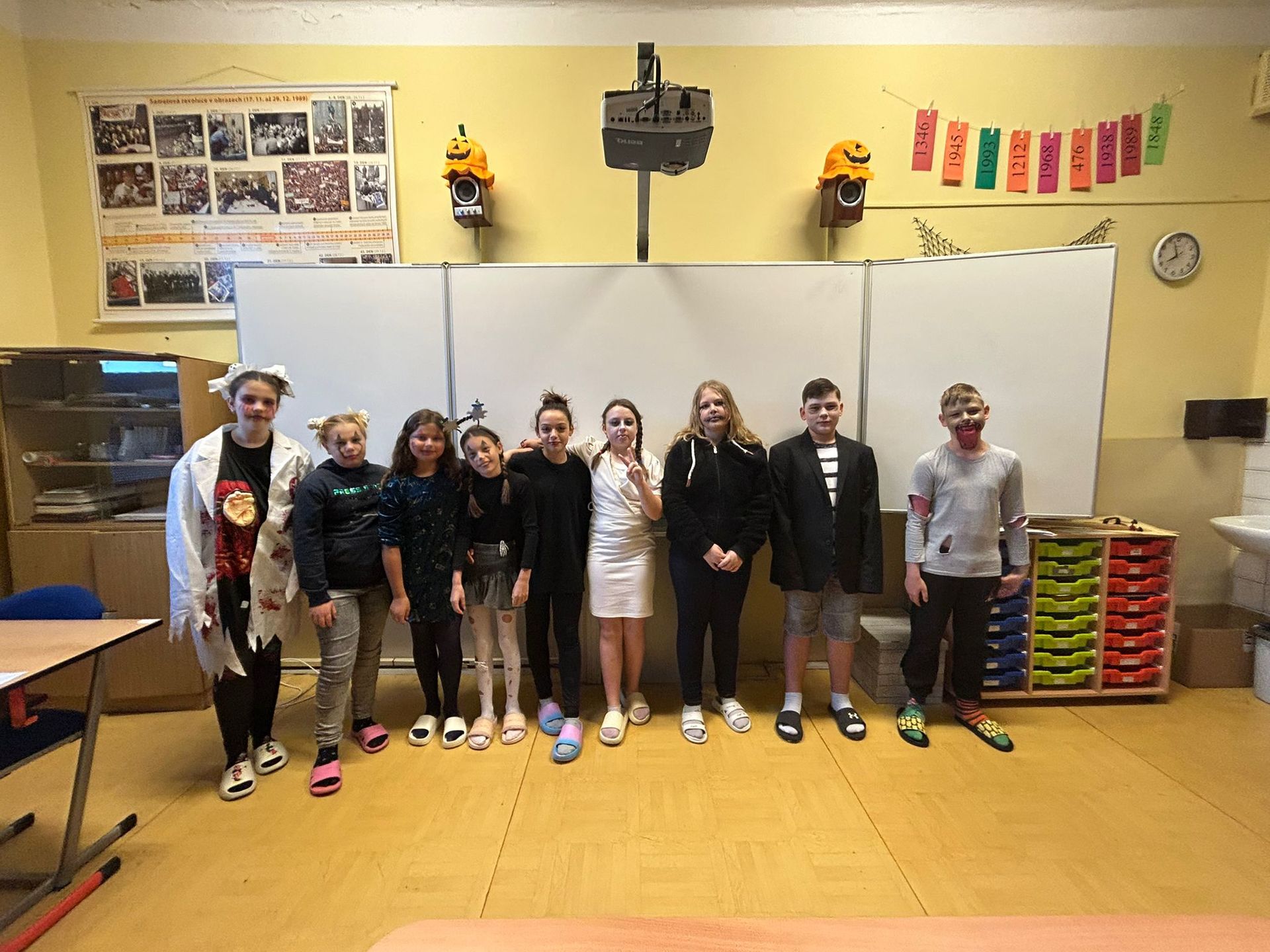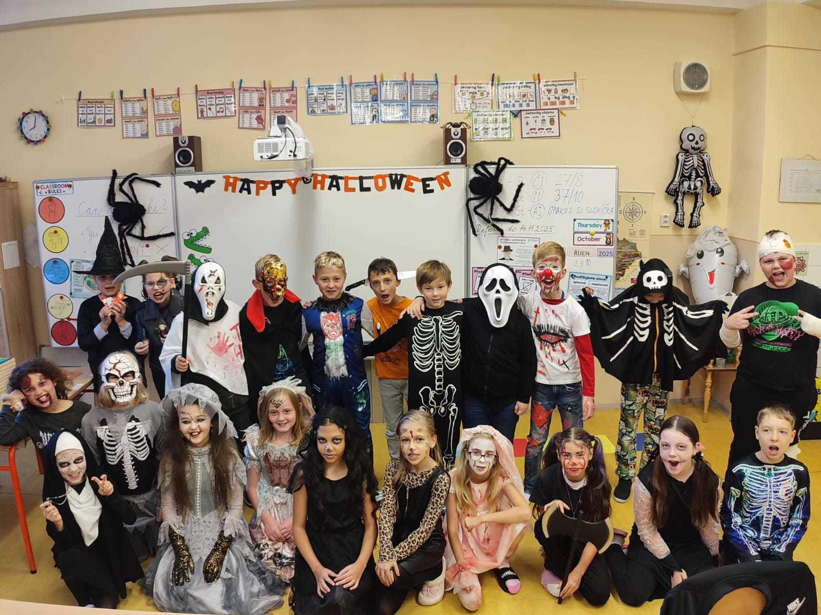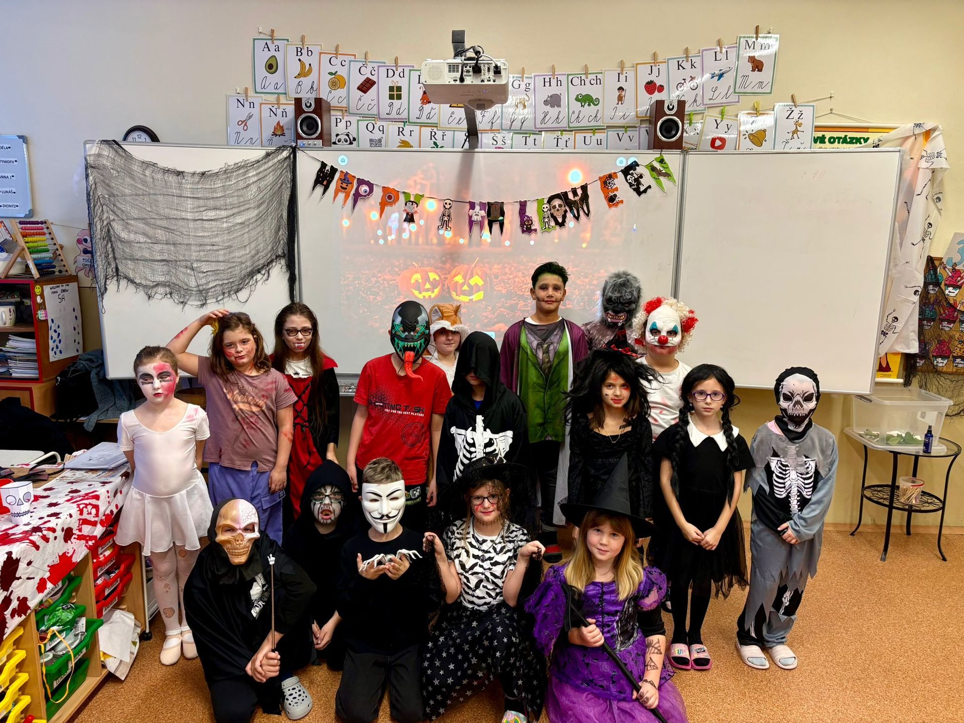 Dne 24. října 2025 proběhla na naší škole již tradiční akce Halloween na Hlubočce, která se těší velké oblibě mezi žáky i pedagogy. Do letošního ročníku se zapojili žáci prvního i druhého stupně, a nezůstal pozadu ani pedagogický sbor, který se také převlékl do nejrůznějších kostýmů. Škola se tak proměnila v pestrou přehlídku strašidelných, vtipných i originálních převleků.