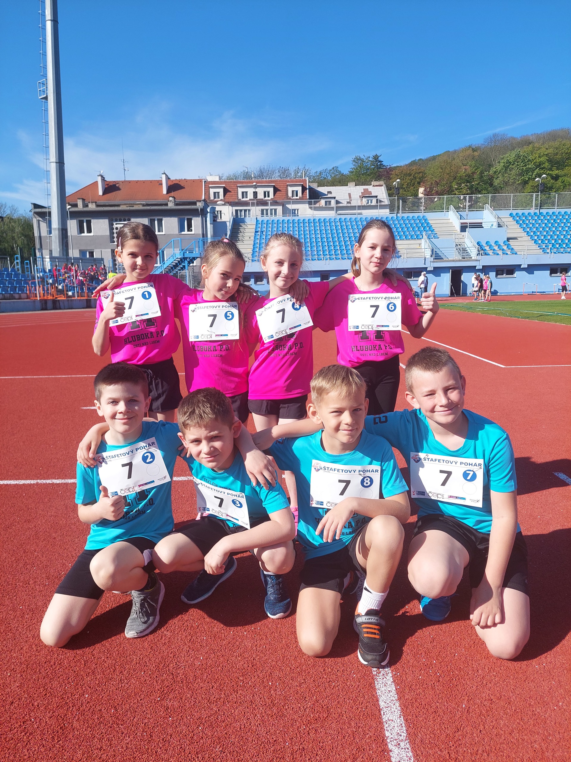 V konečném součtu všech štafet jsme si doběhli pro celkové 4.místo a vybojovali jsme si postup do krajského kola, které se koná v úterý 7.5.2024 na Městském stadionu v Ústí nad Labem.