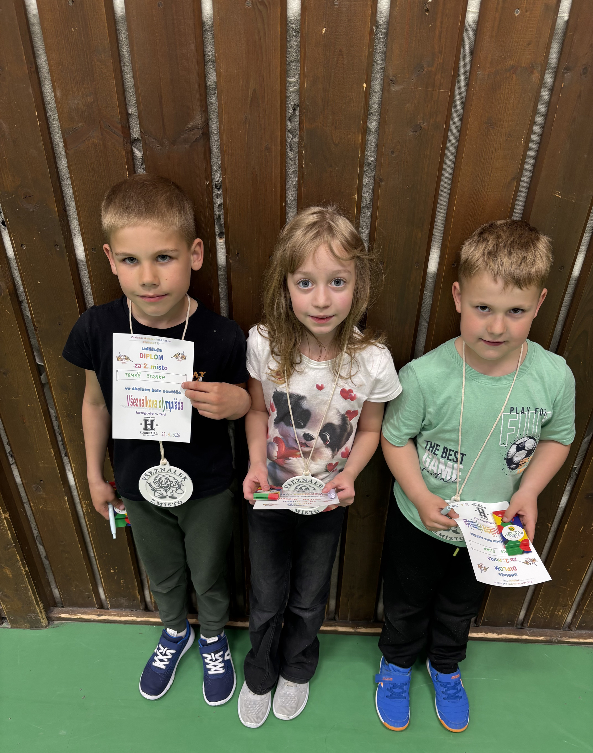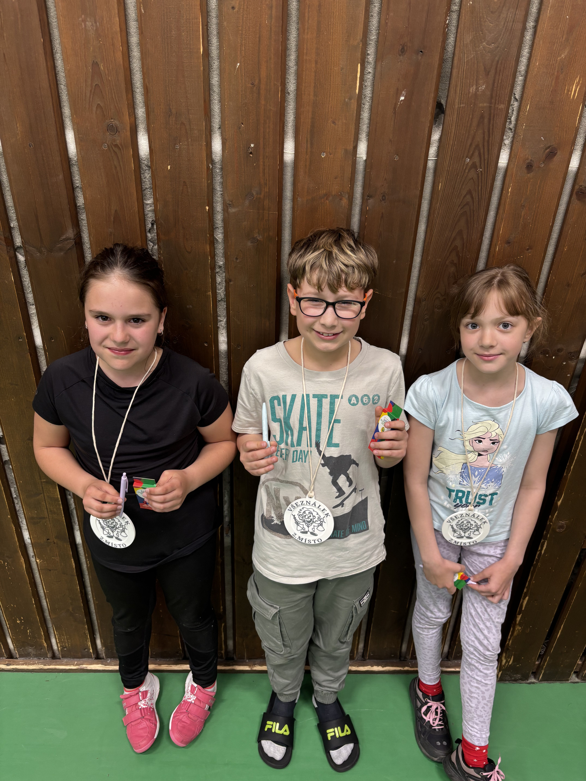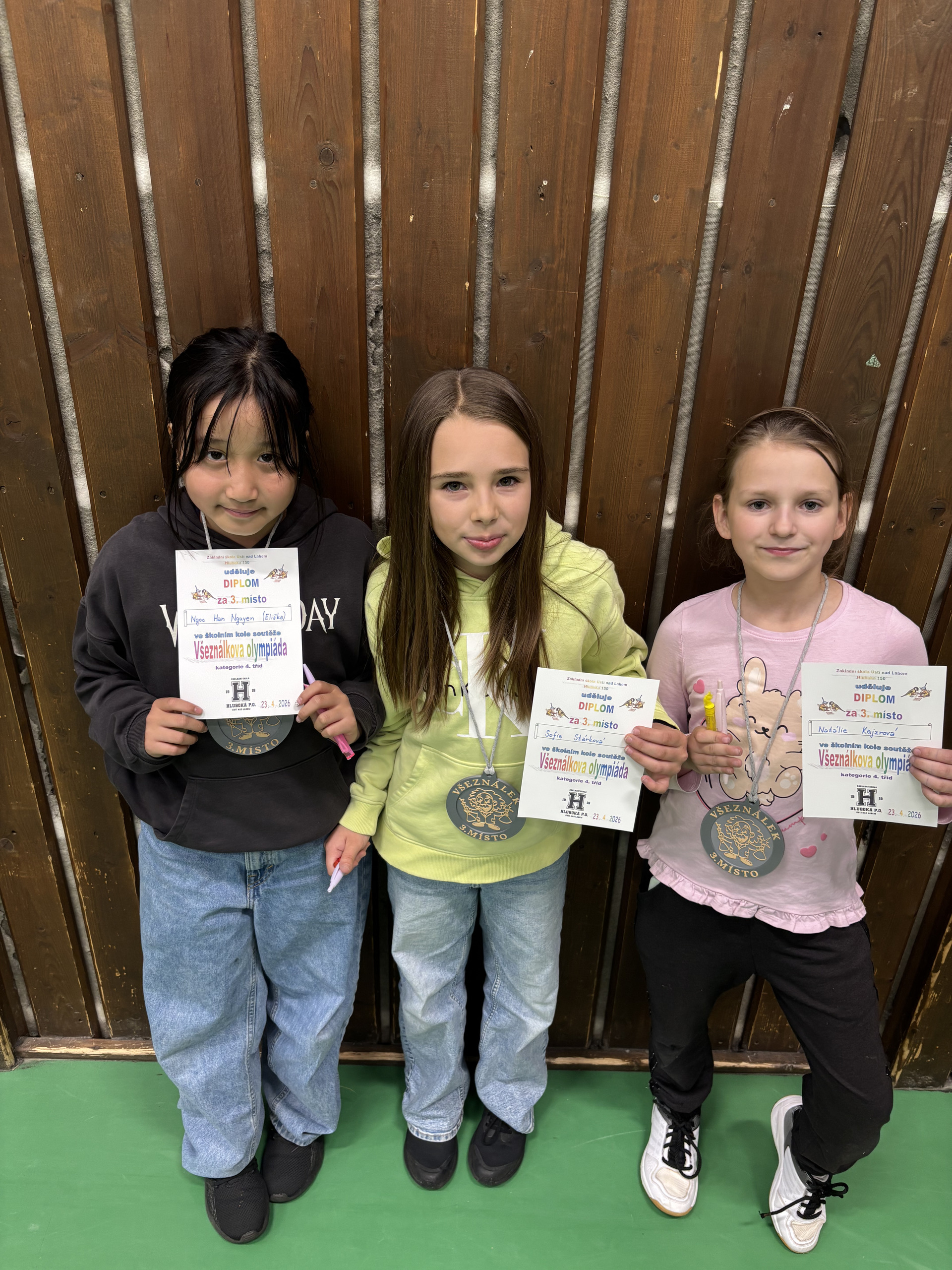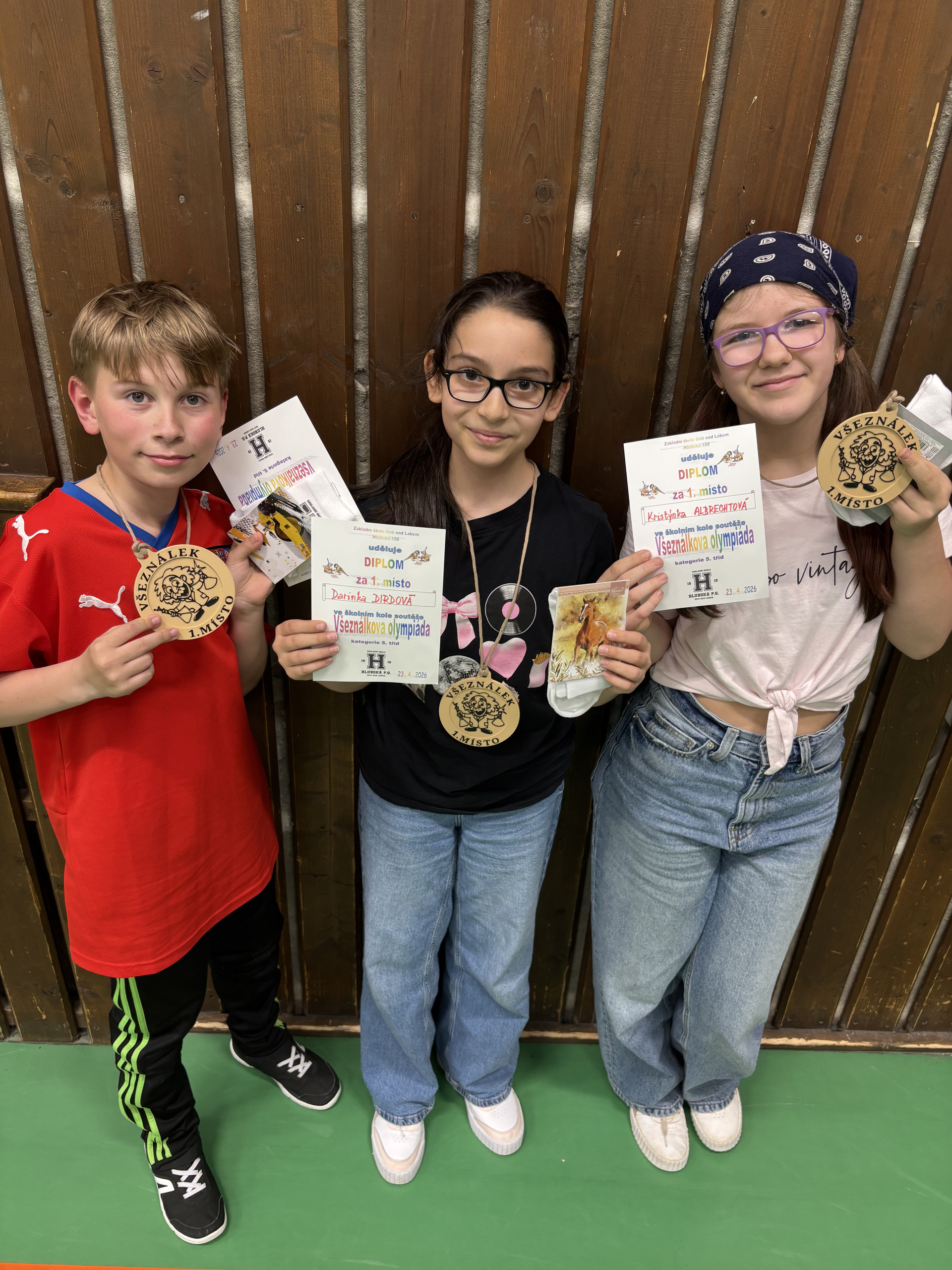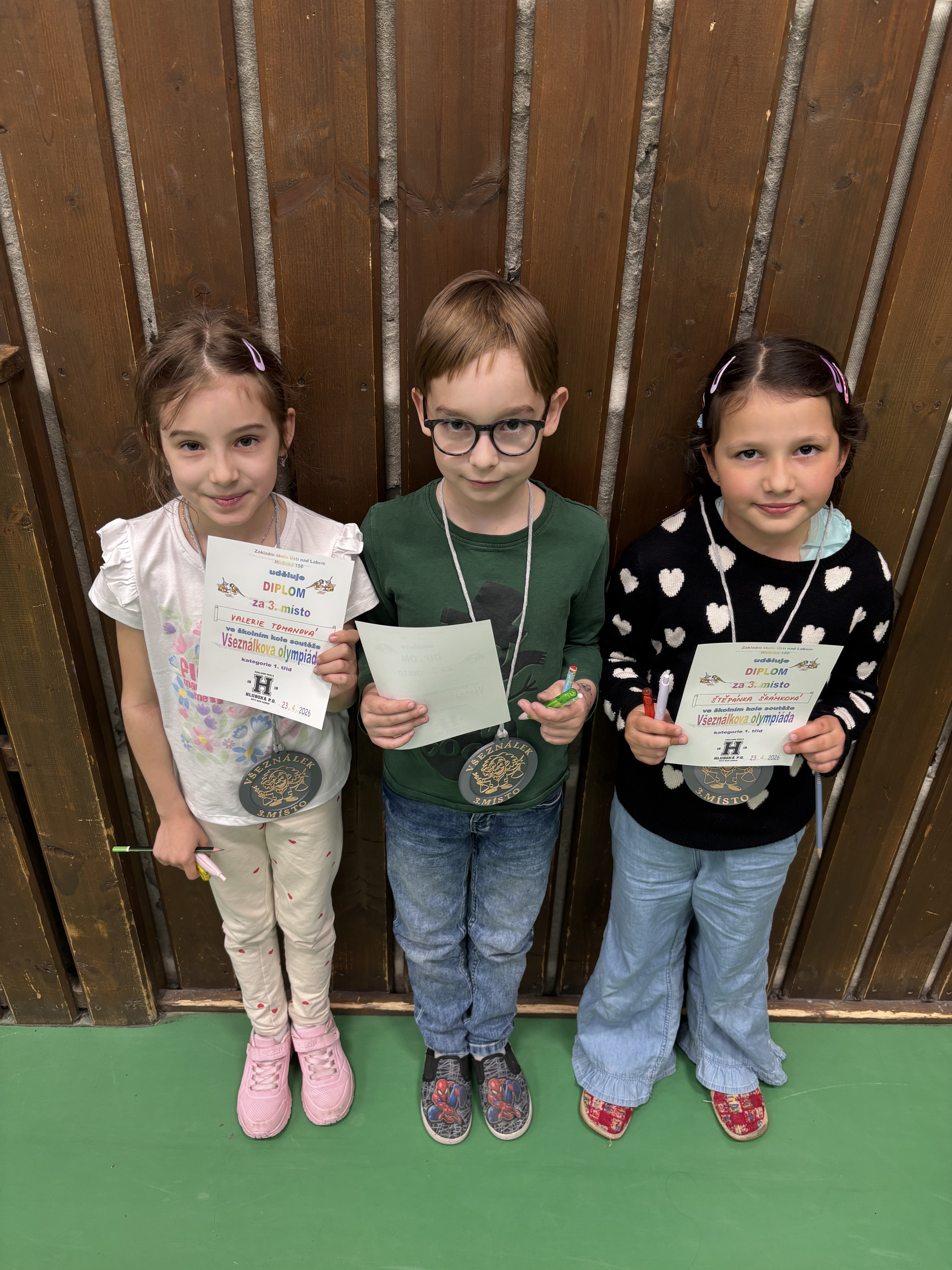 Dne 23. 4. 2026 se na naší škole uskutečnila již tradiční vědomostní soutěž s názvem „Všeználek“, která je určena pro žáky 1. stupně. Každý ročník reprezentovaly dva tříčlenné týmy za jednotlivé třídy. Soutěžící postupně plnili nejrůznější úkoly zaměřené na oblasti logiky, sportovních dovedností, šifer, znalostí o naší vlasti a dalších zajímavých disciplín. Akce proběhla po vyučování a po celou dobu panovala příjemná atmosféra plná soutěžního nadšení a týmové spolupráce. Vše proběhlo hladce a děti si soutěž velmi užily. Máme radost, že se soutěž těší velké oblibě, a už nyní se těšíme na další ročník. Za každý ročník byly vyhlášeny tři nejlepší týmy, na které čekaly medaile a diplomy.