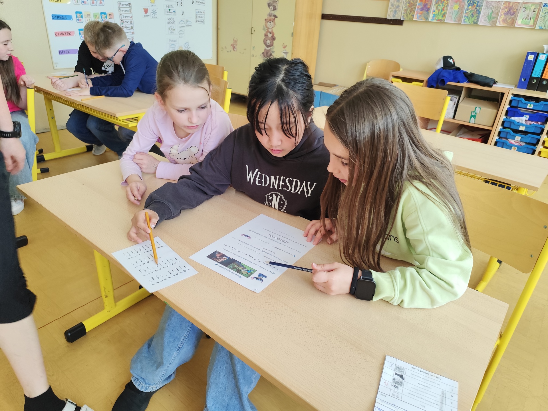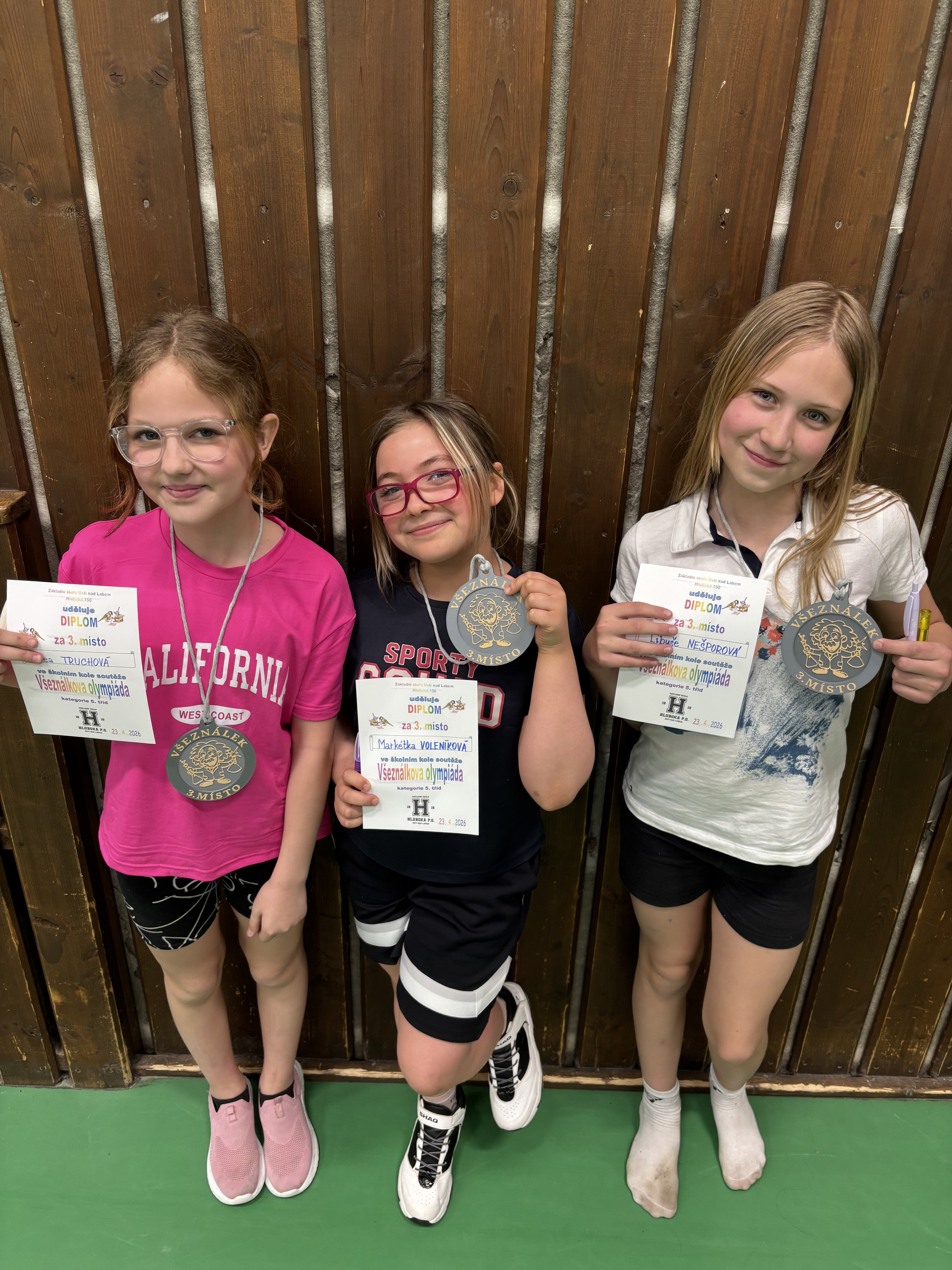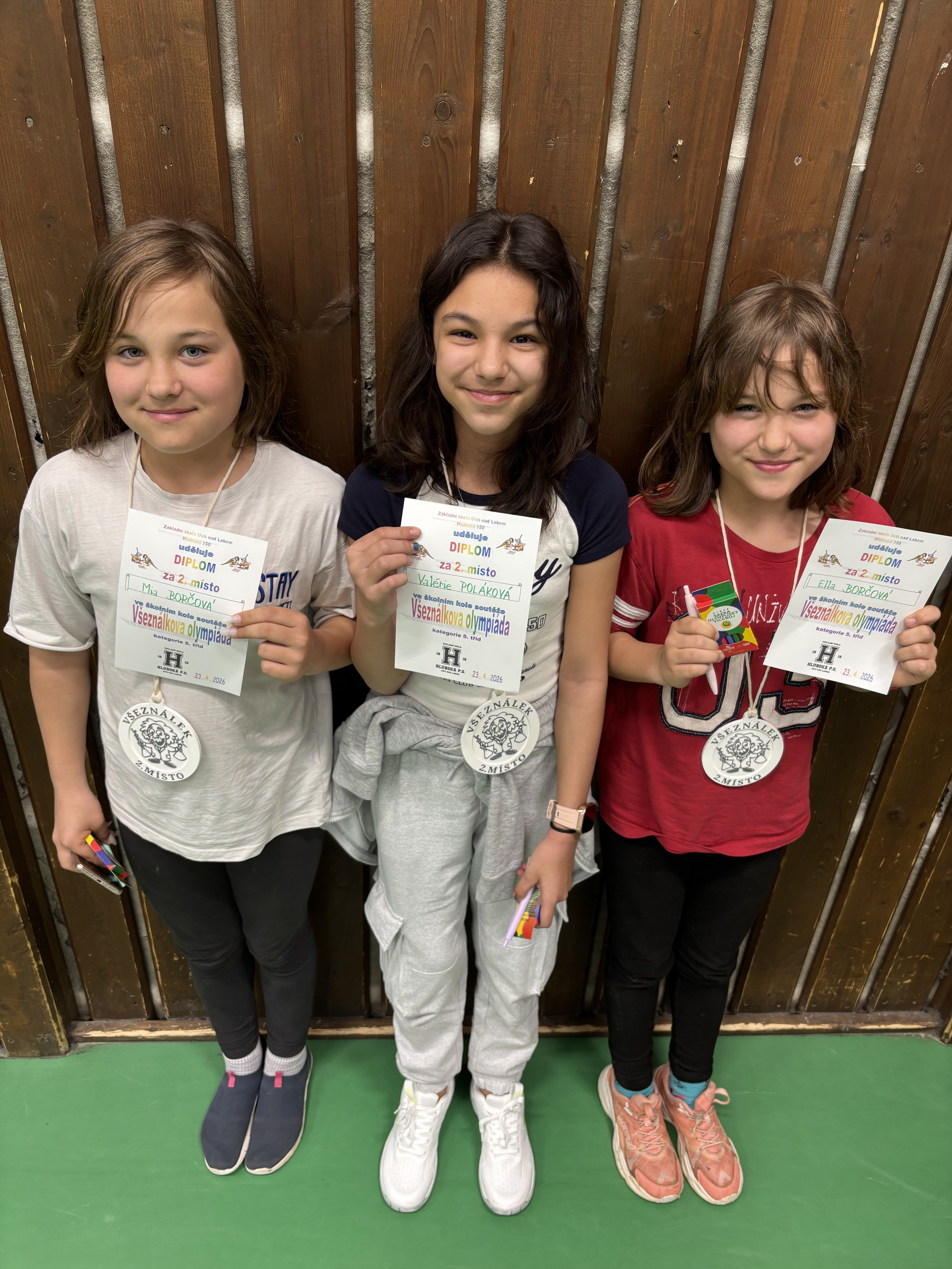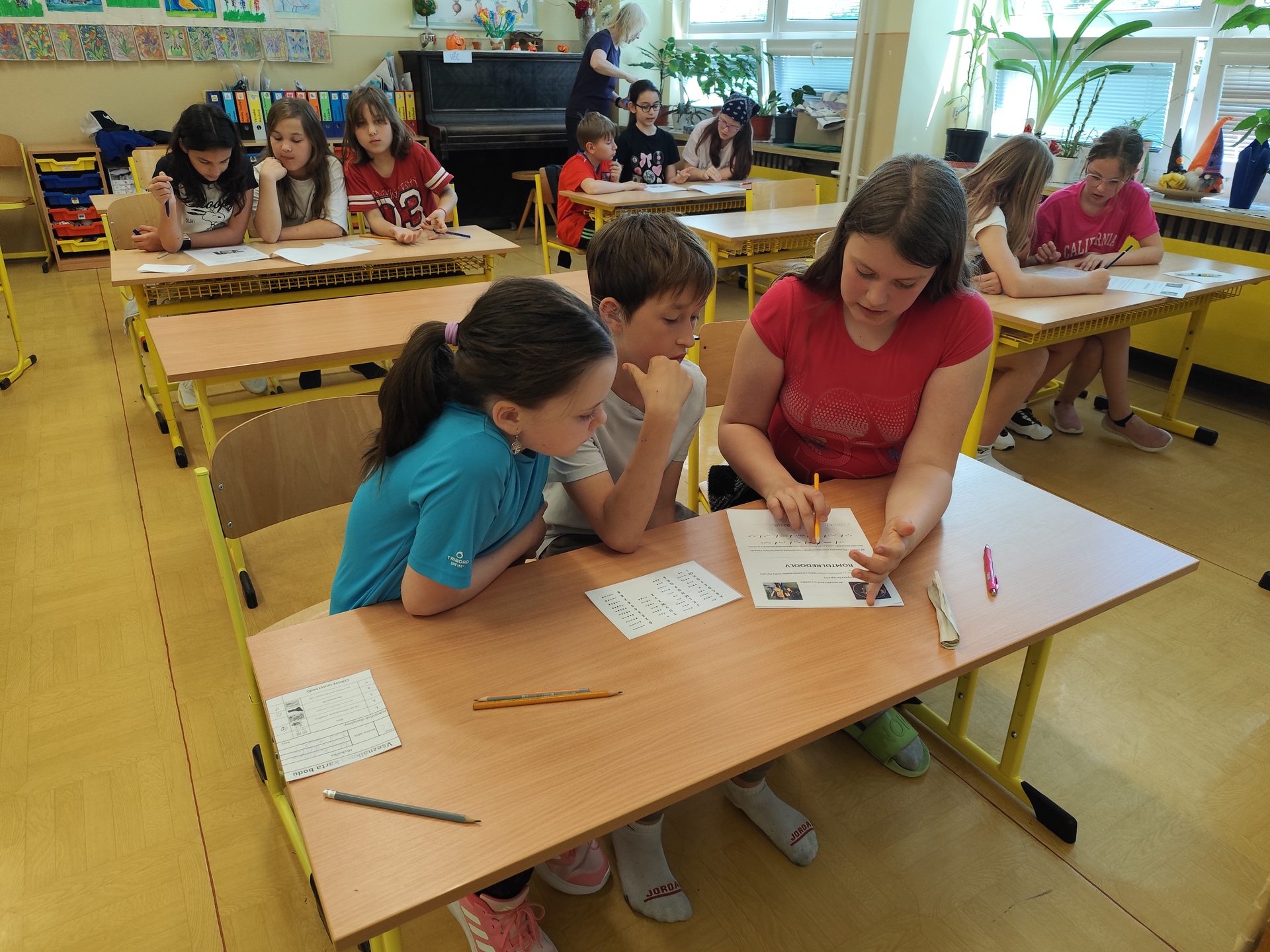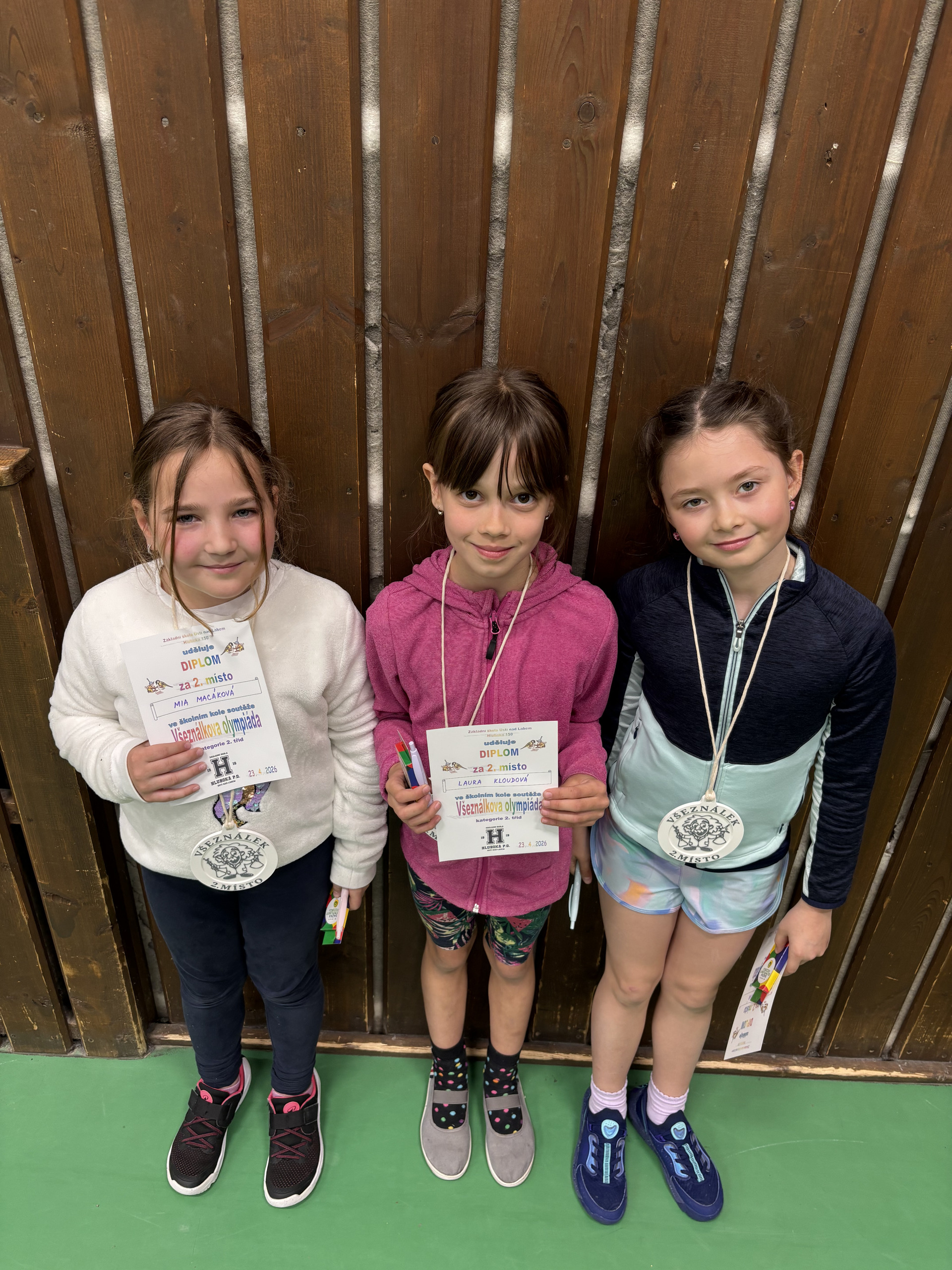 Dne 23. 4. 2026 se na naší škole uskutečnila již tradiční vědomostní soutěž s názvem „Všeználek“, která je určena pro žáky 1. stupně. Každý ročník reprezentovaly dva tříčlenné týmy za jednotlivé třídy. Soutěžící postupně plnili nejrůznější úkoly zaměřené na oblasti logiky, sportovních dovedností, šifer, znalostí o naší vlasti a dalších zajímavých disciplín. Akce proběhla po vyučování a po celou dobu panovala příjemná atmosféra plná soutěžního nadšení a týmové spolupráce. Vše proběhlo hladce a děti si soutěž velmi užily. Máme radost, že se soutěž těší velké oblibě, a už nyní se těšíme na další ročník. Za každý ročník byly vyhlášeny tři nejlepší týmy, na které čekaly medaile a diplomy.